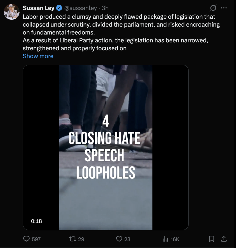 Thank you Amy for bringing immediate commentary from our Parliament at this hugely significant (and worrying ) time for our democracy. IMO Anthony Albanese is hell bent on selective advice re this Hate Speech Bill, and its not the advice of those with expertise, AHRC , religious leaders, Prof Anne Twomey, . This is becoming a pattern of his leadership eg social media ban where he ignored Australian and global youth mental health expertise over NewsCorp campaign & Jonathan Haidt who has been discredited. As a Labor voter I'm so demoralised and have let my new ALP MP in Menzies know about it. The haste which this Bill is being introduced with disrespect for input from the electorate and expertise sends big red flags for Albanese's leadership