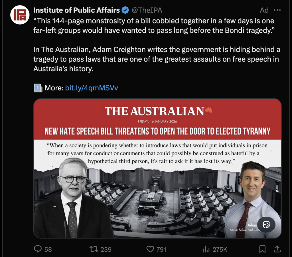 While provisions making it illegal to vilify someone based on their race have been dropped, the watered-down legislation would still allow the government to effectively outlaw groups that promote hatred, likely including neo-Nazi organisation the National Socialist Network and radical Islamist collective Hizb ut-Tahrir.