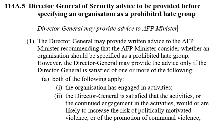 “I will point out that the removal of the serious vilification provisions do mean that these remaining provisions in the prohibited hate groups section do need to do a lot of work.”