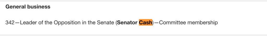 From another blog: Leader of the Opposition in the Senate, Michaelia Cash, had a motion prepared to boot a bunch of Nationals from Senate committees.