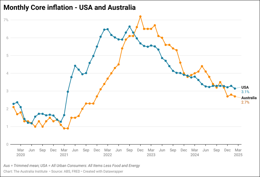 Here in Australia the ABS has also started to measure inflation each month. And as a result, it also now measures core inflation each month. So, what was it in February? 2.7%.