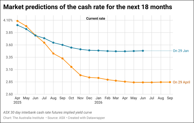 We are getting inflation data today (around 11.30 as with all ABS releases) and that has economists thinking about the next RBA meeting where another interest rate cut is predicted. (Depending on how much of a wave Trump’s chaos creates, the market is predicting up to five interest rate cuts over current months, as central banks look to starve off recession threats from the blow back)