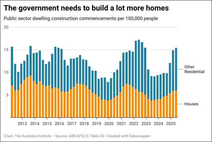 So, the long-term situation is bad. That is a lot of years of the public sector abandoning the field to the private sector to undo. Add in that since 1999 the private sector has also had the 50% capital gains tax discount and you end up with a housing market where the private sector is supercharged and given free reign.