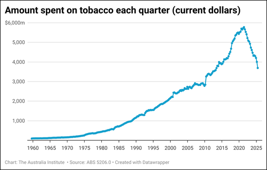 This is because the amount that Australians are spending on tobacco has declined at an absolutely astonishing rate: