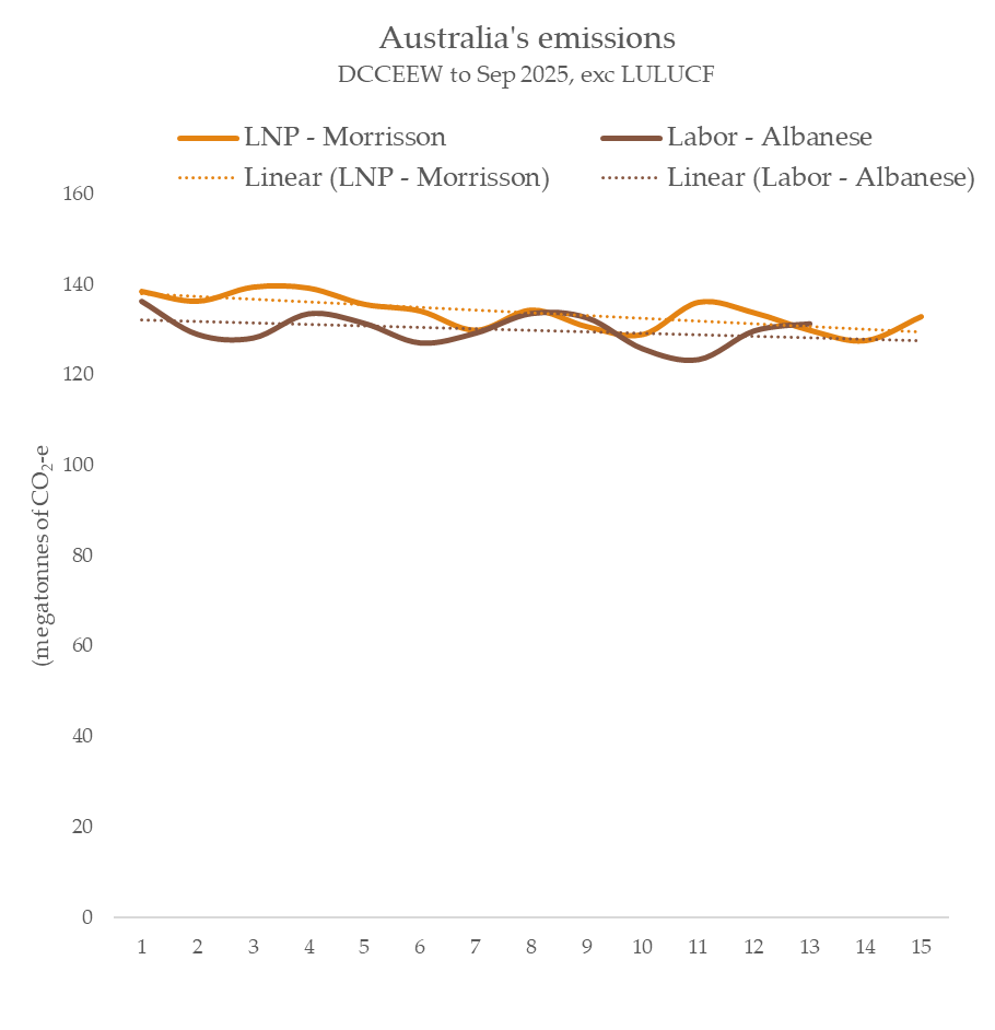 Emissions from their first quarter since elected onwards, for both Albanese and Morrison