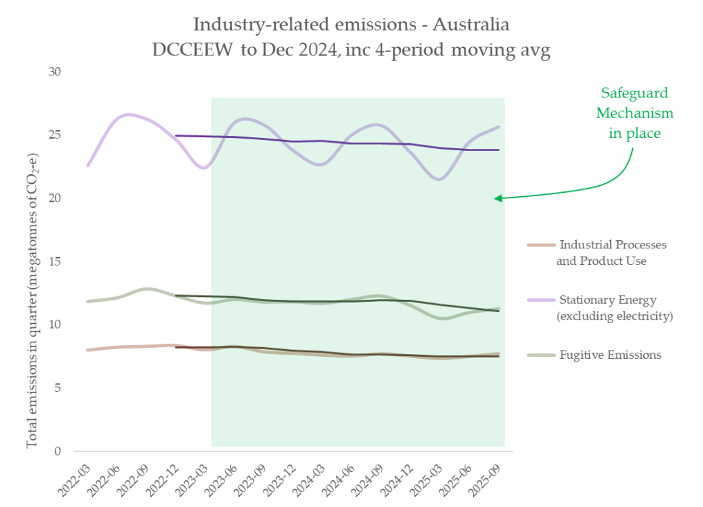 There have been only very minor changes to the safeguard-related sectors since enacting the scheme…..if you squint really hard you can see a slight downwards trend that was in place prior to the scheme’s establishment