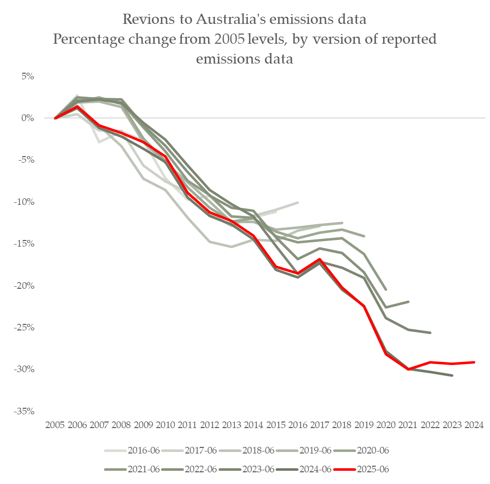 The latest emissions data confirms that Australia is very much not on track for its weak 2030 targets – even after you include dodgy land-use data and accept the major historical adjustments that have been applied to get Australia much closer to its target.