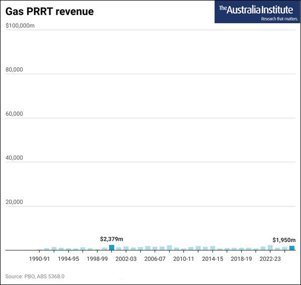 Australia’s notional tax on the super profits of gas companies is the Petroleum Resources Rent Tax (PRRT). And yet as the exports of LNG from Australia boomed, PRRT revenue actually fell: