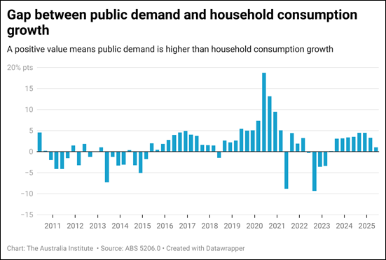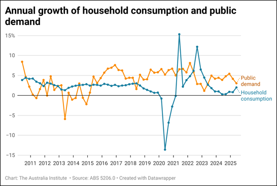 From 2015-2020 when household spending growth was as low as it is now, public demand helped keep things from falling over – and guess what, during this time interest rates were still cut!
