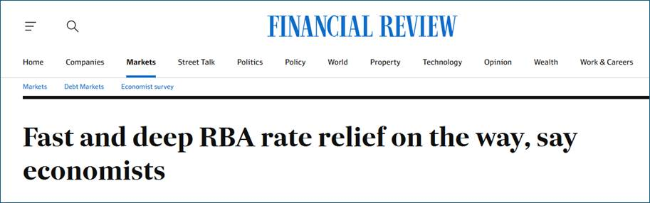 Now the markets and economists are clear – the RBA will cut rates in May, and because of the tariffs will likely have to cut rates by more than previously expected over the next 6 months.