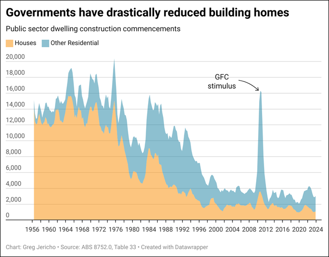 This is one area where no governments of the past 25 years should be boasting. Apart from the GFC stimulus public housing is in despair