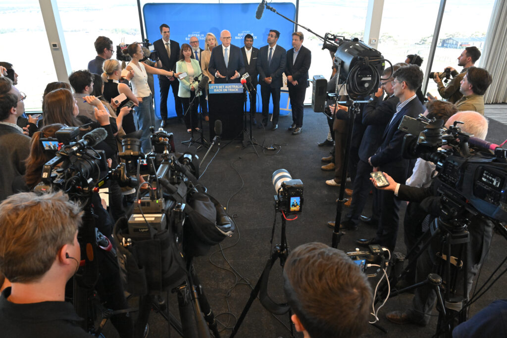 Leader of the Opposition Peter Dutton at a press conference after visiting the Marnong Winery, on the northern outskirts of Melbourne on day 4 of his 2025 Federal Election Campaign in the seat of Calwell, Tuesday, April 1, 2025. Leader of the Opposition Peter Dutton at a press conference after visiting the Marnong Winery, on the northern outskirts of Melbourne on day 4 of his 2025 Federal Election Campaign in the seat of Calwell, Tuesday, April 1, 2025.