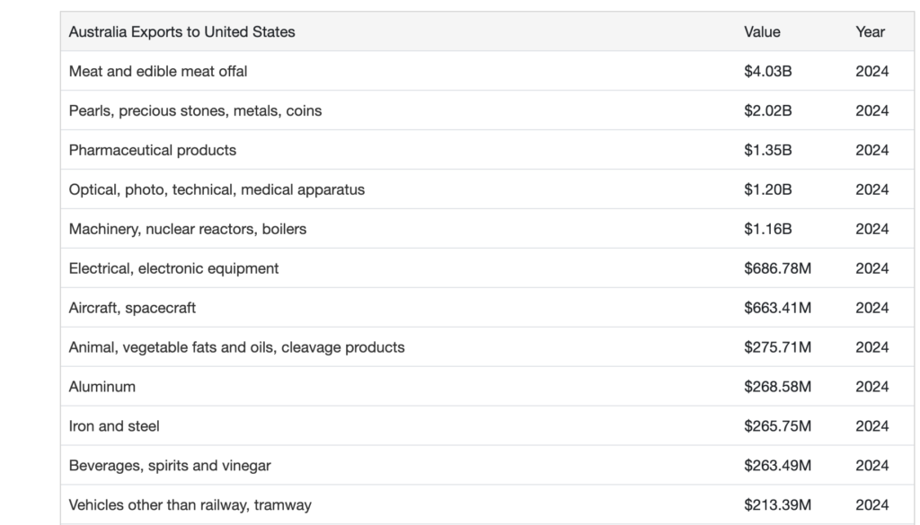 So first, let’s take a look at what Australia exports to the United States, and what could therefore have tariffs applied to it under whatever Trump’s administration announces.