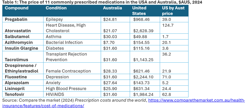 The Australia Institute has compared the staggering difference between the prices Australians and Americans pay for some of the most common medicines in the world.