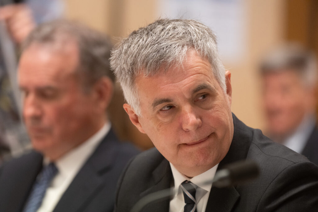The CEO of Optus Stephen Rue before the Environment and Communications references committee 000 service outage investigation. Monday 3rd November 2025.Photograph by Mike Bowers
