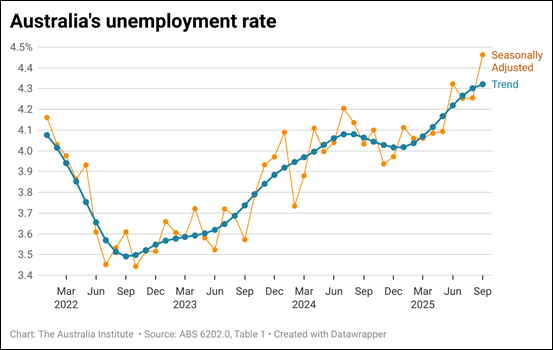 She was asked about the current state of the economy, specifically the unemployment rate hitting 4.5%, which was above the RBA’s forecast peak for the next 2 years of 4.3%. She told the room