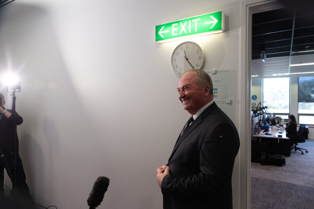 Barnaby Joyce talks to the media in the Press Gallery of Parliament House in Canberra on Monday. Photo by Mike Bowers.